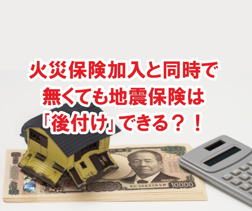 火災保険の契約時に付けなくても、契約途中で加入はできます。地震保険が付けられるのは、損害保険会社が提供する火災保険となります。少額短期保険会社の火災保険に地震保険を付けることはできません。ご注意いただければ幸いです。