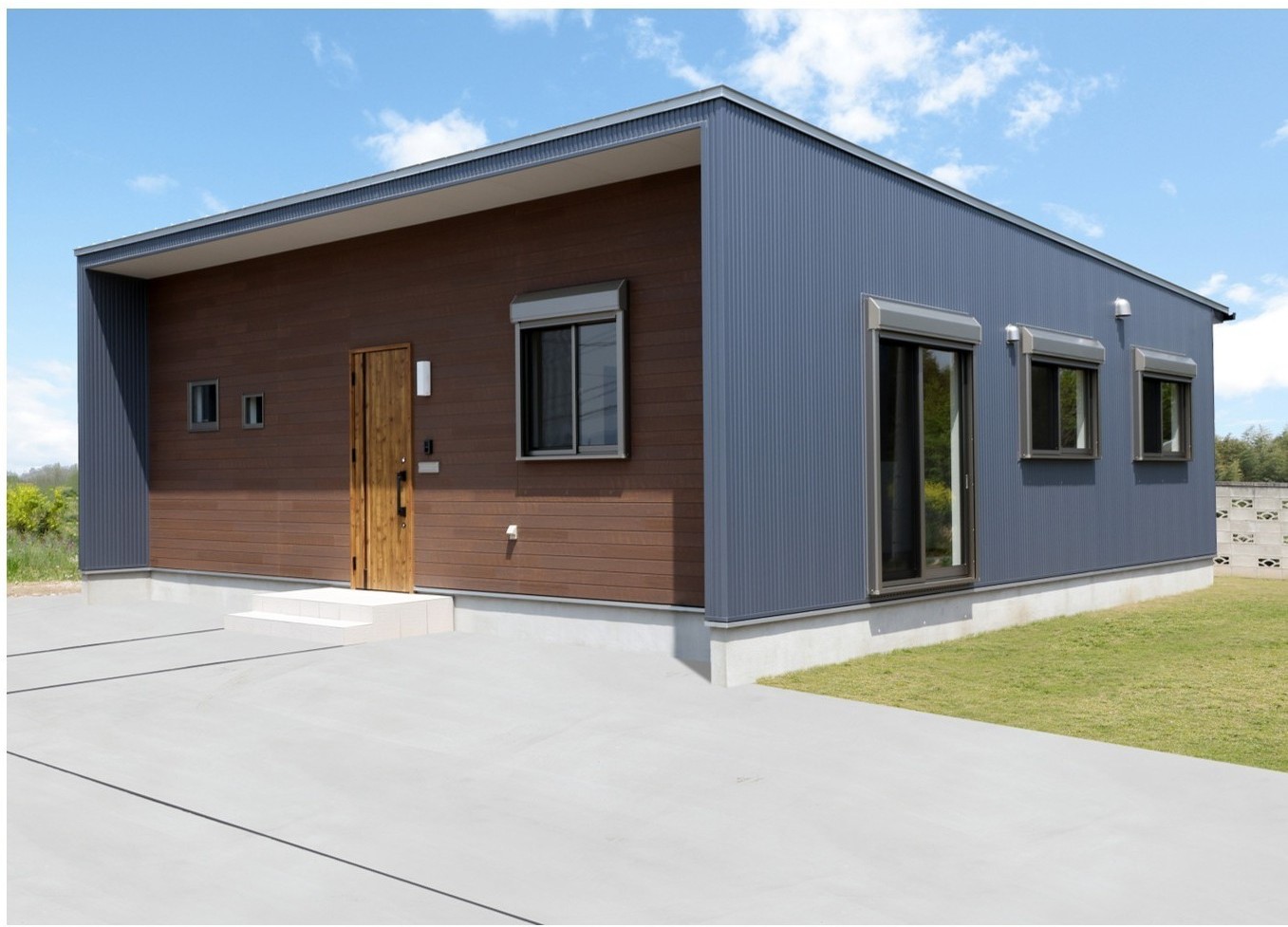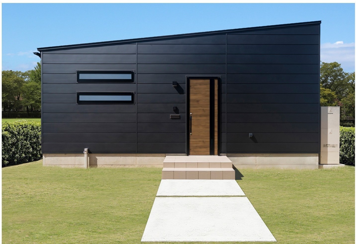 片流れ屋根が際立つスタイリッシュでシャープな印象の外観です。