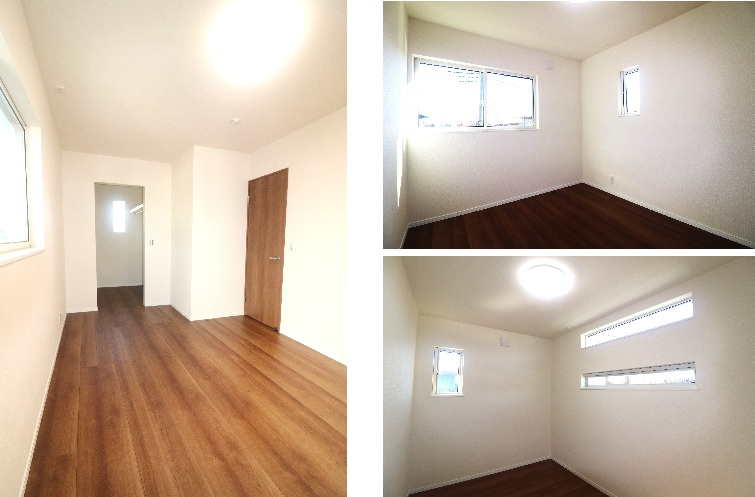 2Fの居室、7帖・5.2帖・5帖はどの居室も二面採光。