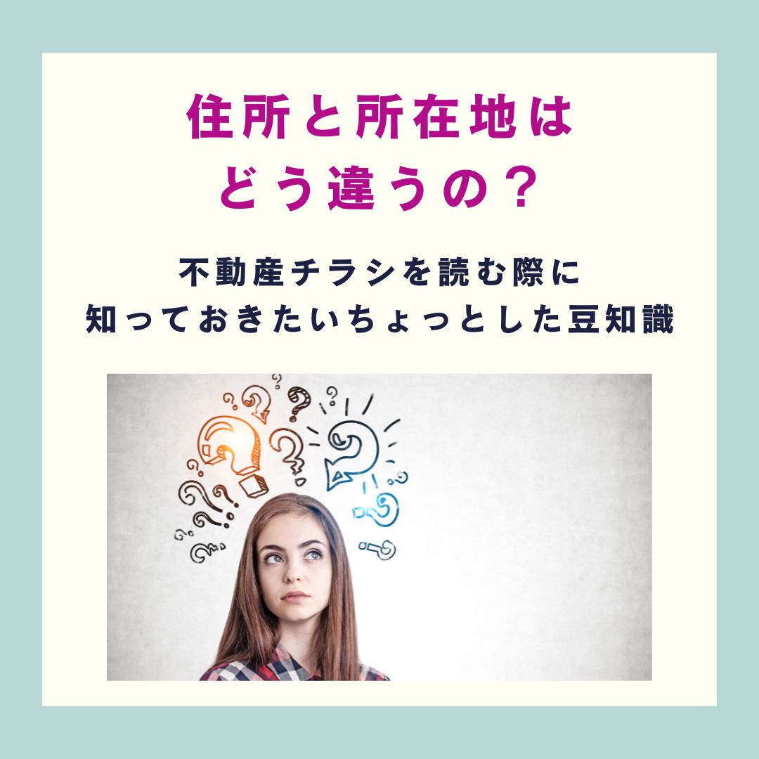 今回は、この「所在」と「住所」の違いについて詳しく解説し、これを知っておくことで物件選びがちょっとだけスムーズになるポイントをご紹介します。